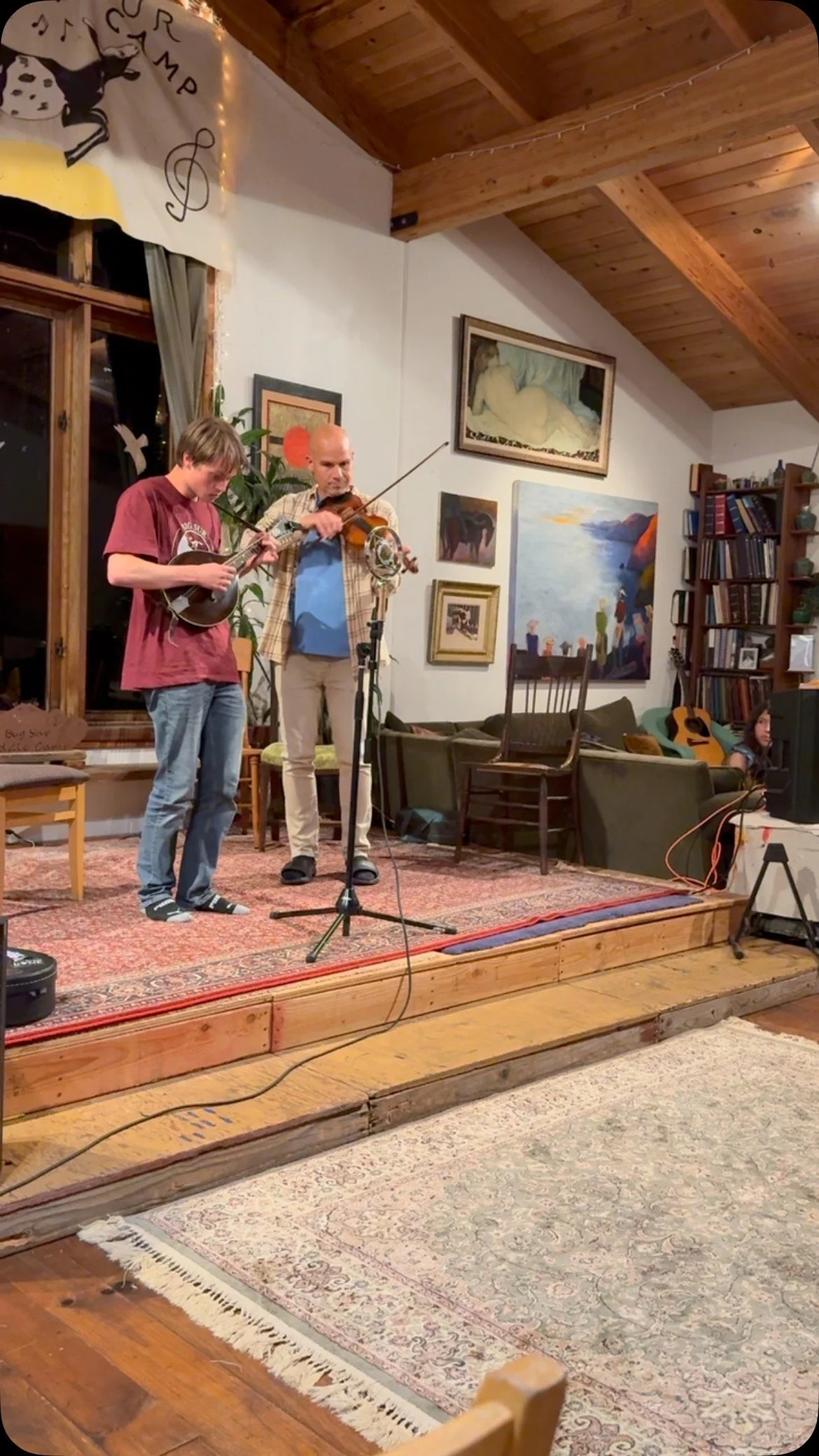 Abigail plays Salt Creek by Bill Monroe on fiddle, banjo, and guitar.